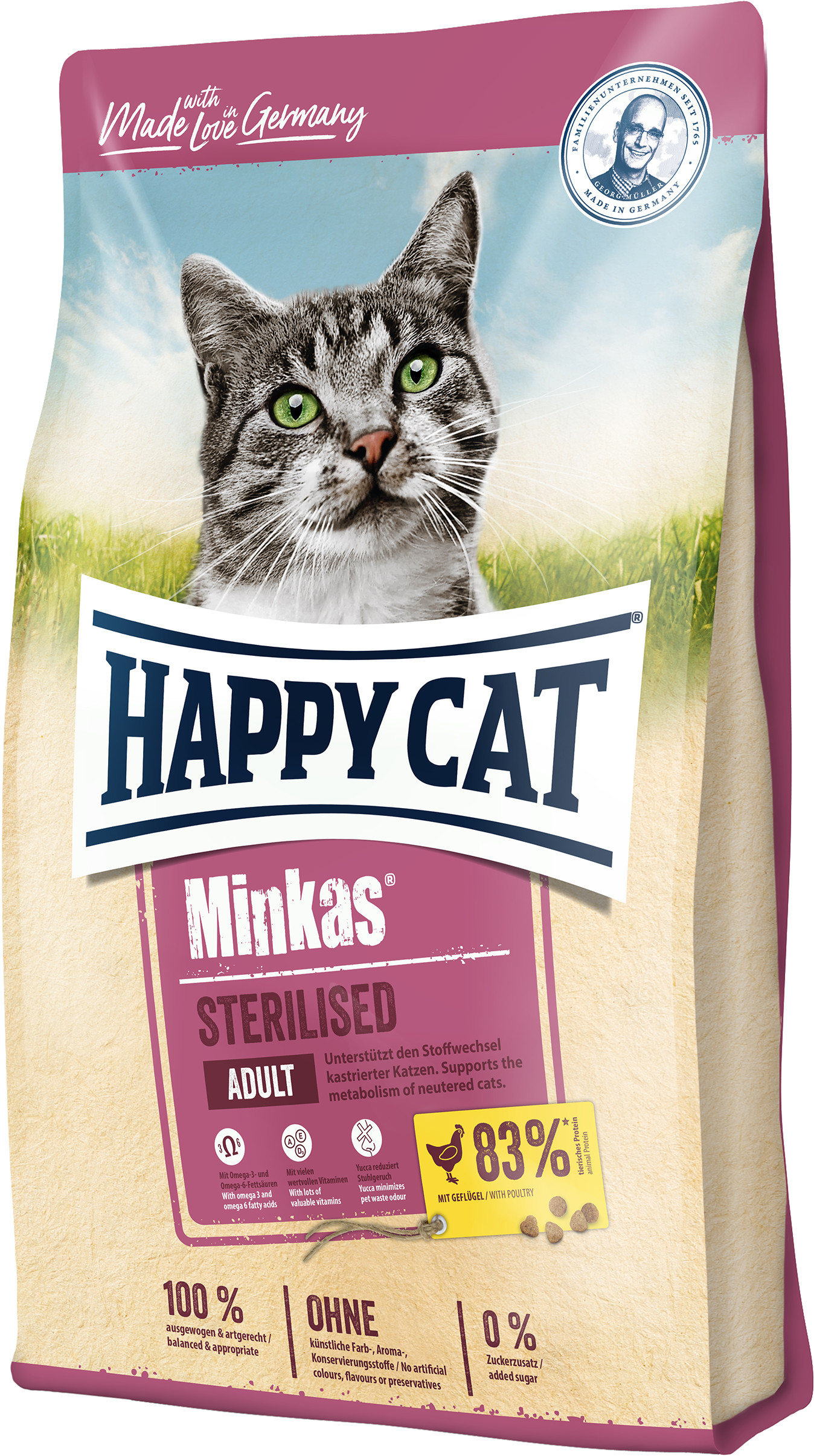 Happy Cat Minkas Sterilised - це ідеальний корм для стерилізованих котів, які хочуть бути здоровими, активними та красивими.