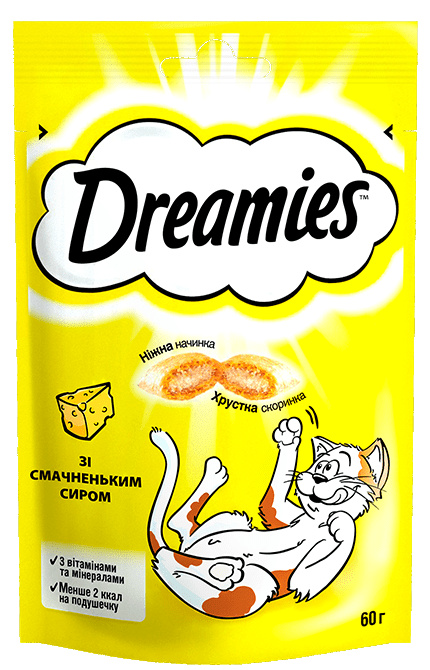 Рекомендації з годування на добу: дорослим котам згодовуйте до 20 подушечок DREAMIES™ з ласим лососем на добу.