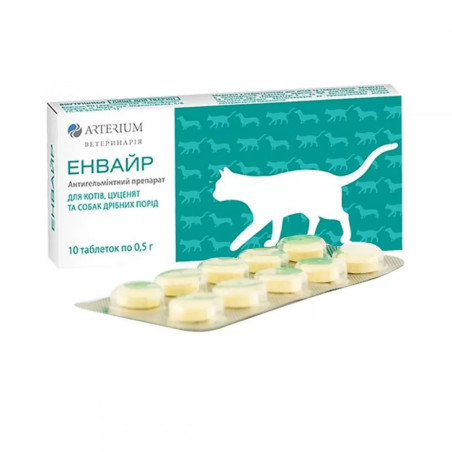 Arterium Енвайр ® Антигельмінтик для кішок, цуценят і собак малих порід - це ефективний препарат, який призначений для лікування та профілактики глистів у домашніх тварин.