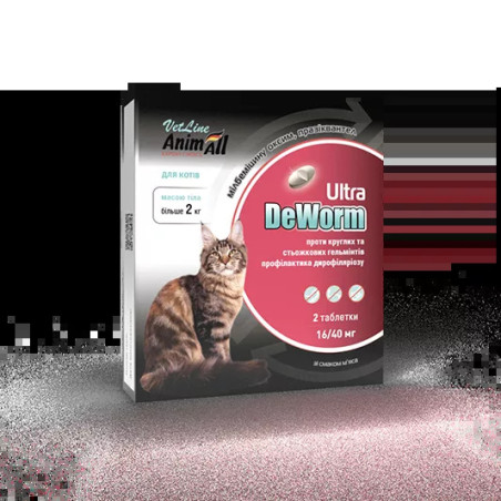 0Високоефективний засіб АнімАлл ДеВорм Ультра для лікування та профілактики глистових інвазій у котів від 2 кг 2 таблетки.