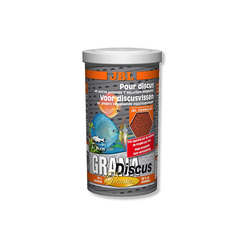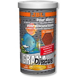 Основний корм преміум-класу в формі гранул JBL GranaDiscus для дискус, 1 л повноцінний корм, оптимальний ріст і яскраве забарвлення завдяки відбірного сировини для вимогливих дискус; поживний, легко перетравлюється і зміцнює імунітет: ідеальний корм завдяки напів-плавучим гранулам; не викликає помутніння води: скорочує зростання водоростей завдяки правильному змістом фосфатів, покращує якість води завдяки засвоюваності, в результаті знижується кількість екскрементів риб; риби вибирають корм JBL: 98,5% всіх видів риб брали корм JBL в ході науково-дослідних експедицій в прісноводні водойми.