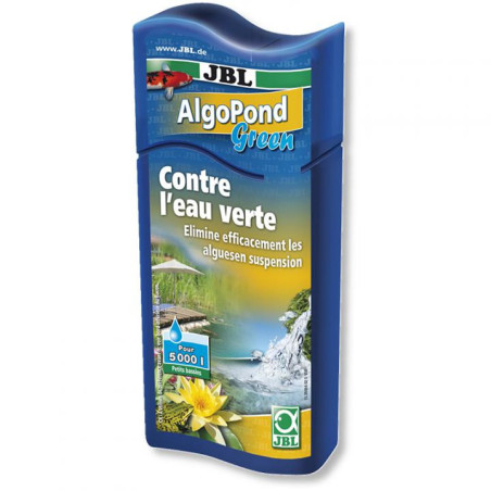 Кондиціонер JBL AlgoPond Green для боротьби з плаваючими водоростями в садовому ставку, 250 мл Для підходящої для риб і рослин води: кондиціонер для усунення плаваючих водоростей (зеленої води) в садовому ставку Просто використовувати: обчисліть дозування, змішайте з ставкової водою в лійці, рівномірно розподіліть по ставку.