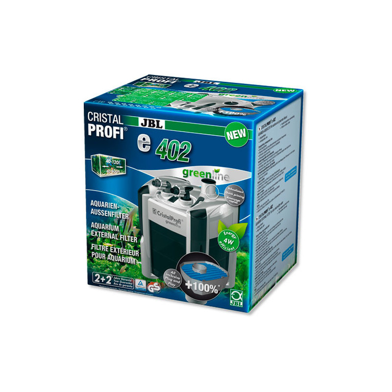 Зовнішній фільтр JBL CristalProfi e402 greenline для акваріумів 40-120 лзовнішній фільтр для чистої і здорової води в акваріумі: закрита система циркуляції води для акваріумів 40-120 літрів (40-80 см);повністю обладнаний і готовий до підключення: вбудована система швидкого запуску означає запуск фільтра без всмоктування води.