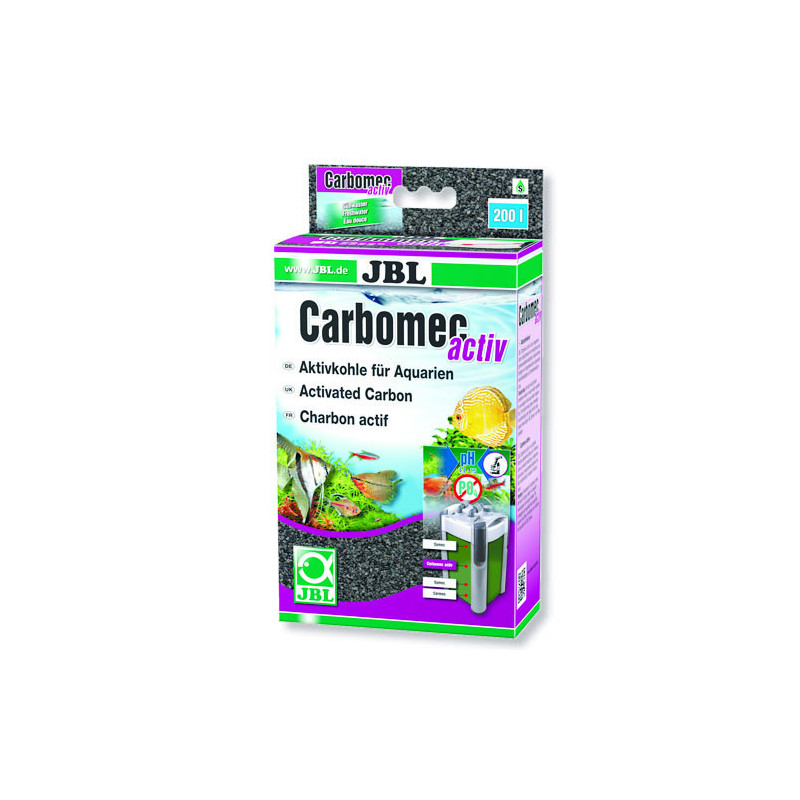 Високопродуктивний активоване вугілля JBL Carbomec activ для прісноводних акваріумів, 400 г видаляє з води залишки ліків, забарвлення води і високомолекулярні органічні забруднювачі: активоване вугілля для акваріумних фільтрів; застосування: засипте вугілля в універсальний мішок, багаторазово промийте під теплою водою, прополощіть холодною водою.