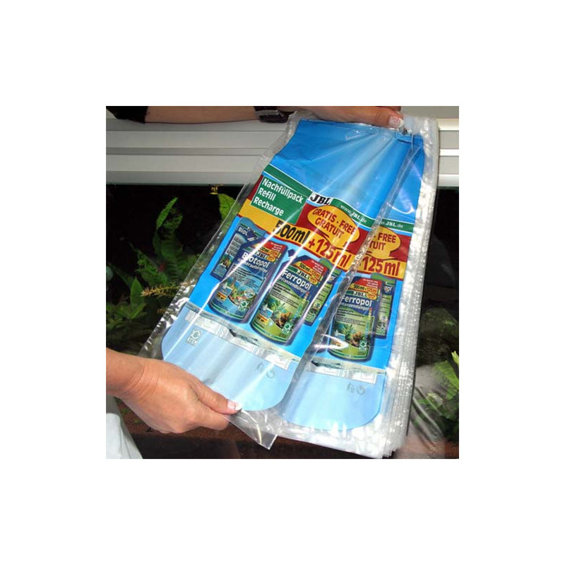 Якісний пакет JBL Fish Bag S для транспортування риб, маленький з подвійним швом; денце з округленими запаяними кутами; інструкція з транспортування риб на ньому, англ, фр мовами; прозора нижня частина.