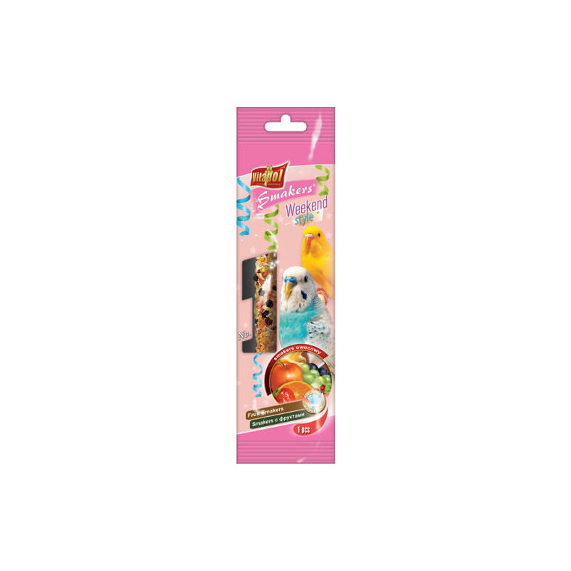 Колба Vitapol Weekend Style для хвилястого папугу, фруктвий, 45 г Ласощі Smakers – ці ласощі у вигляді палички.