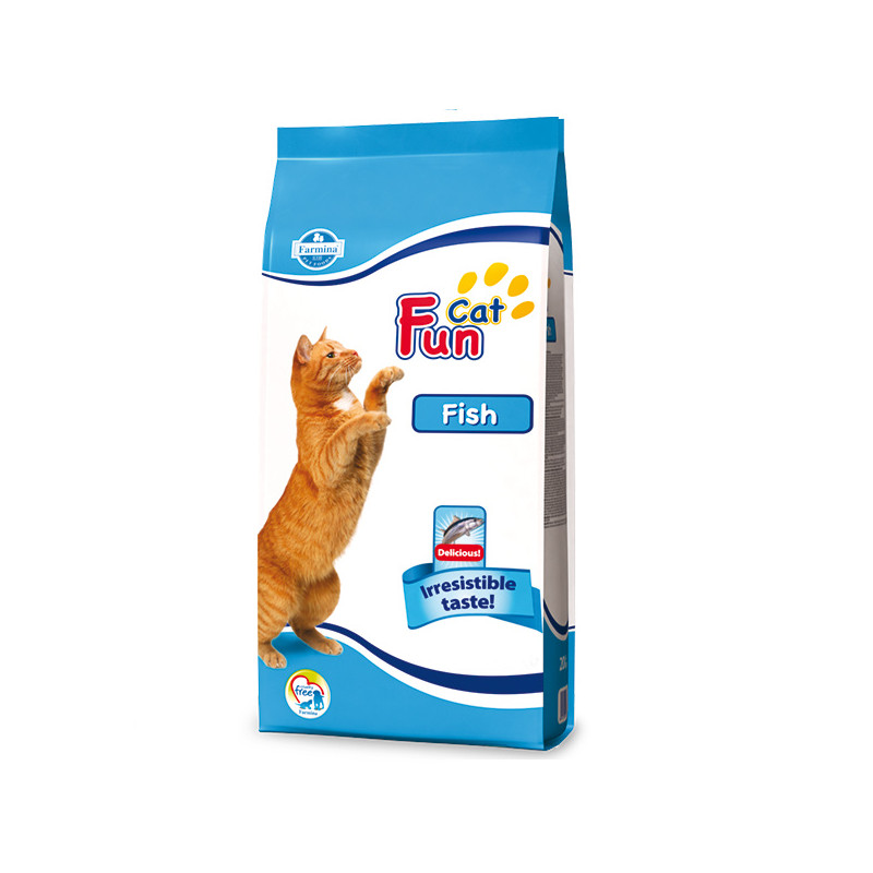 FUN CAT FISH 20 KGПовнораціонний і збалансований корм для дорослих кішок з рибою 20 кгFUN CAT FISH - повнораціонний корм для дорослих кішок, який повністю відповідає вимогам здорового і збалансованого харчування: риба, курка і м'ясо забезпечують необхідний рівень білку.