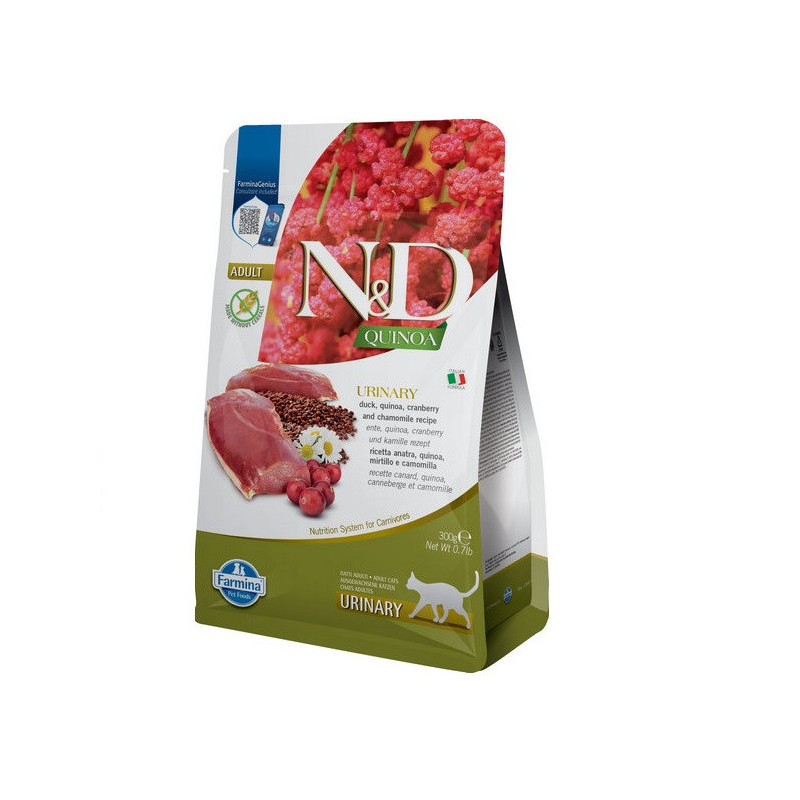 Качка, кіноа, журавлина і ромашка.Склад: свіже м'ясо качки без кісток (20%), дегідратований білок качки (20%), курячий жир, гороховий крохмаль, кіноа (8%), зневоднені яйця, зневоднений білок оселедця, риб'ячий жир (оселедець), сушена журавлина (2,5%), ромашка (2,5%), фруктоолiгосахариди, дріжджовий екстракт (джерело манноолiгосахаридів), лушпиння насіння подорожника, карбонат кальцію, хлорид калію, сухі пивні дріжджі, хлорид натрію, екстракт алое вера, глюкозамін, хондроїтин сульфат.Харчові добавки на кг. : Вітамін А - 18000 МО; Вітамін D3 - 1200 МО; Вітамін Е - 600 мг, Вітамін С - 300 мг; Ніацин - 150 мг; D-кальцію пантотенат - 50 мг; Вітамін В2 - 20 мг; Вітамін В6 - 8,1 мг; Вітамін В1 - 10 мг; Біотин - 1,5 мг; Фолієва кислота - 1,5 мг; Вітамін В12 - 0,1 мг; Холіну хлорид - 2500 мг; Бета-каротин - 1,5 мг; Цинк (Хелат цинку гідрокси-аналога метіоніну) - 163. 80 мг; Марганець (Хелат марганцю гідрокси-аналога метіоніну) - 64,6 мг; Залізо [Залізо (II) хелат гідрату гліцину] - 58,3 мг; Мідь (Хелат міді гідрокси-аналога метіоніну) - 15,8 мг; DL-метіонін, технічно чистий - 3500 мг; Таурин - 2000 мг, L-лізин моногідрохлорид - 1000 мг.