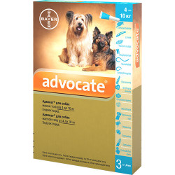 Краплі проти паразитів Байєр Адвокат Спот-он для собак 4-10 кгBayer (Байєр) Адвокат Спот-он Золотий стандарт контролю паразитів у собак. Склад: 10% імідаклоприду та 2,5% моксідектину. Показання до застосування: Собакам для лікування і профілактики змішаних паразитарних інвазій: - для лікування та попередження зараження блохами (Ctenocephalides felis), - лікування отодектоза (Otodectes cynotis), - лікування корости (Sarcoptes scabiei var. canis), - лікування демодекозу (Demodex canis), - попередження дирофіляріозу (ефективний проти личинок L3 і L4 Dirofilaria immitis), - лікування та попередження гастроінтестинальних нематодозів (личинки (L4), незрілі і зрілі Toxocara canis, Ancylostoma caninum і Uncinaria stenocephala, імаго Toxascaris l eonina і Trichuris vulpis). Препарат може використовуватися як один із засобів при лікуванні алергічного блошиного дерматиту. Дозування і спосіб застосування: Мінімальна терапевтична доза 10 мг / кг ваги імідаклоприду і 2,5 мг / кг ваги моксідектину, що еквівалентно 0,1 мл Адвоката на 1 кг живої ваги для собак. Вага тварини (кг) Розмір піпетки Обсяг, (мл) Імідаклоприд, (мг / кг ваги) Моксідектин, (мг / кг ваги) & gt; 4 - 10 кг Адвокат для середніх собак 1,0 10-25 2,5-6,25 & gt; 10 25 кг Адвокат для великих собак 2,5 10-25 2,5-6,25 & gt; 25 40 кг Адвокат для дуже великих собак 4,0 10-16 2,5-4 & gt; 40 кг Відповідна комбінація піпеток Лікування та попередження зараження блохами. Одноразова обробка препаратом попереджає зараження блохами протягом 4-х тижнів.