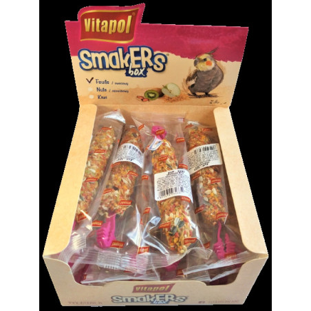 Колба Vitapol Smakers Box для німф, зі смаком фруктів, упаковка 12 шт Ласощі Smakers складаються з трьох шарів з'єднаних так, щоб мінімізувати втрати корму під час поїдання.