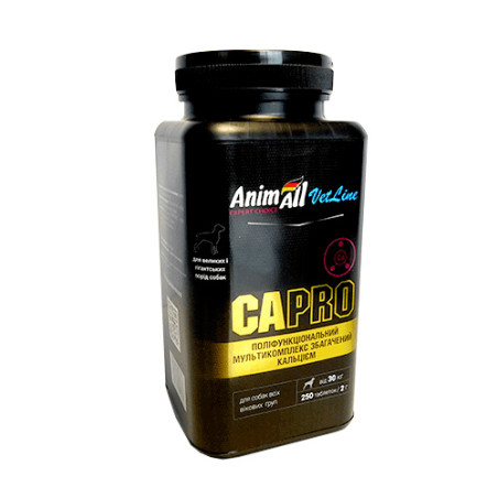 AnimAll VetLine Ca PRO для великих порід собак250 таб по 2 грПрофілактика і комплексна терапія при порушеннях кальцій-фосфорного балансу.