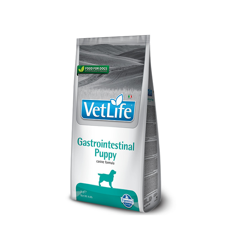 Farmina Vet Life Gastrointestinal Puppy дієтичний корм для цуценят, рекомендований для лікування синдрому порушення всмоктування та перетравлення їжі в шлунково-кишковому тракті, при екзокринній недостатності підшлункової залози.