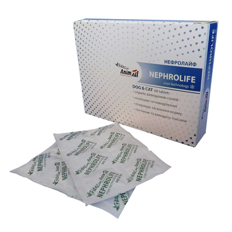 AnimAll FitoLine Нефролайф, фітокомплекс AnimAll FitoLine Нефролайф Таблетки сірувато-зеленого кольору з коричнево-червоними, жовтими і білими включеннями.
