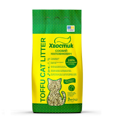 Соєвий наповнювач ТМ «Хвостик» – наповнювач, виготовлений з натуральної сировини, відзначається відмінною здатністю поглинати вологу і формувати грудочки, що робить прибирання легким та зручним.