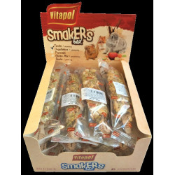 Колба Vitapol Smakers Box для гризунів, зі смаком овочів, упаковка 12 шт Ласощі Smakers складаються з трьох шарів з'єднаних так, щоб мінімізувати втрати корму під час поїдання.