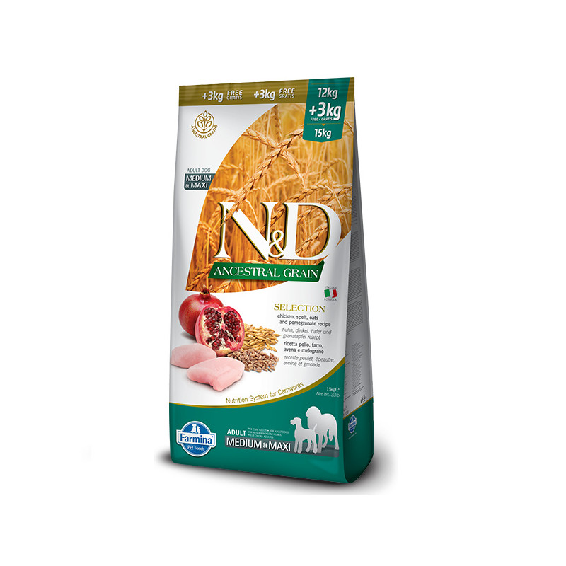 N&D LOW GRAIN DOG CHICKEN & POMEGRANATE ADULT 15 KGНизькозерновий сухий корм для дорослих собак (курка / гранат), 15 кгFarmina N & D Low Grain CHICKEN & POMEGRANATE Adult - це повноцінний сухий корм для дорослих собак.