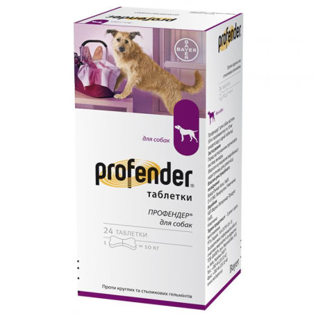 Таблетки Байєр Профендер від глистів для собакПрофендер для собак. Таблетки у формі кісточки для внутрішнього застосування для знищення гельмінтів шлунково-кишкового тракту і їх личинок в організмі собаки Ключові вигоди Профендер: 1.