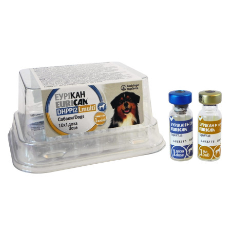 Назва ветеринарного препаратуЕУРІКАН Lmulti, EURICAN Lmulti – вакцина інактивована проти лептоспірозу собак.СкладОдна доза суспензії містить: активнодіючі речовини:Інактивована Leptospira Interrogans Canicola, штам 16070……}у кількості достатній для забезпечення Інактивована Leptospira Interrogans Icterohaemorrhagiae, штам 16069…....} ефективності відповідно Інактивована Leptospira Interrogan
