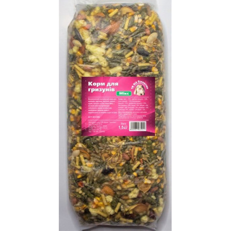 Мій Пухнастик корм для гризунів мікс, 1,5 кг Мій Пухнастик Повнораціонний корм для гризунів Мікс . Натуральний комплексний корм для кроликів, морських свинок, хом'яків, мишей, щурів і шиншил.