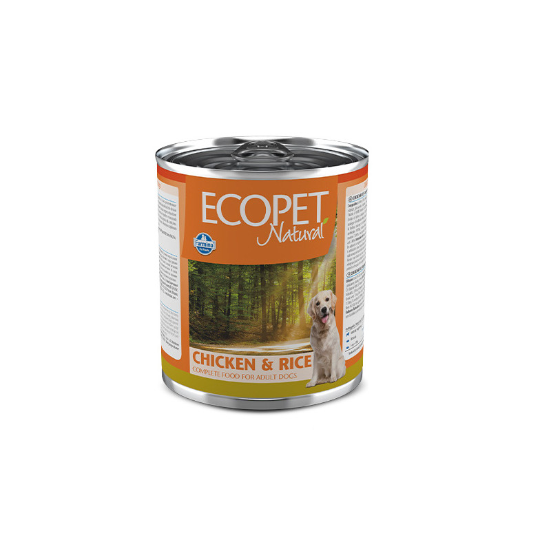 Повнораціонний корм для дорослих собак усіх порід з куркою та рисом.Склад: курка 30%, оселедець, рис 3%, фруктоолігосахариди, хондроїтинсульфат, глюкозамін, вітаміни, мінерали.Харчові добавки на кг: вітамін А 4000МЕ; вітамін D3 400 МО; вітамін Е 130 мг; Холіну хлорид 400 мг; Цинк (цинковий хелат гідроксианалогу метіоніну): 36,00 мг; Марганець (марганцевий хелат гідроксианалогу метіоніну): 6,80 мг; Залізо [хелат заліза (II) гідрату гліцину]: 16,80 мг; Мідь (хелат міді гідроксильного аналога метіоніну) 2,90 мг; Селен (селенізовані інактивовані дріжджі): 0,00242 мг; DL-метіонін, технічно чистий 1000 мг; таурін 500мг; L-карнітин 50мг.Поживні речовини: вологість 78%; сирий протеїн 9%; жир-сирець 4,5%; сирі волокна 0,60%; сира зола 2,40%.Енергетична цінність: EM Ккал/кг 941 - МДж/кг 3,94