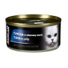 Ваша кішка буде вдячна за цей смачний та поживний раціон, який стане для неї справжньою насолодою.Головні інгредієнти: м’ясо тунця 70,0%, вода 29,6%.Амінокіслоти та вітаміни: таурин (3A370) 0,1%, вітамін A (3A672b) 0,03%, вітамін E (3A700) 0,02%, вітамін B1 (3A820) 0,001%, вітамін D3 0,002%, (3A671), вітамін K3 (3a711) 0,002%.Гарантований склад: білок (мін) 6,5%, жир (мін) 2,00%, зола (макс) 2,00%, клітковина (макс) 1,50%, волога (макс) 84,0%.Виготовлено на замовлення та під контролем TM AnimAll.Вироблено: PRC.