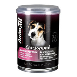 АнімАлл Вологий корм для собак Консоме з качкою, куркою, курячим серцем та курячим жовтком, 375 г.Консоме з качкою, куркою, курячим серцем та курячим жовтком - це високоякісний і збалансований корм для собак, який містить різноманітні натуральні інгредієнти для забезпечення здорового харчування вашого улюбленця.