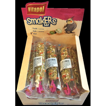 Колба Vitapol Smakers Box для німф, зі смаком ківі, упаковка 12 шт Ласощі Smakers складаються з трьох шарів з'єднаних так, щоб мінімізувати втрати корму під час поїдання.