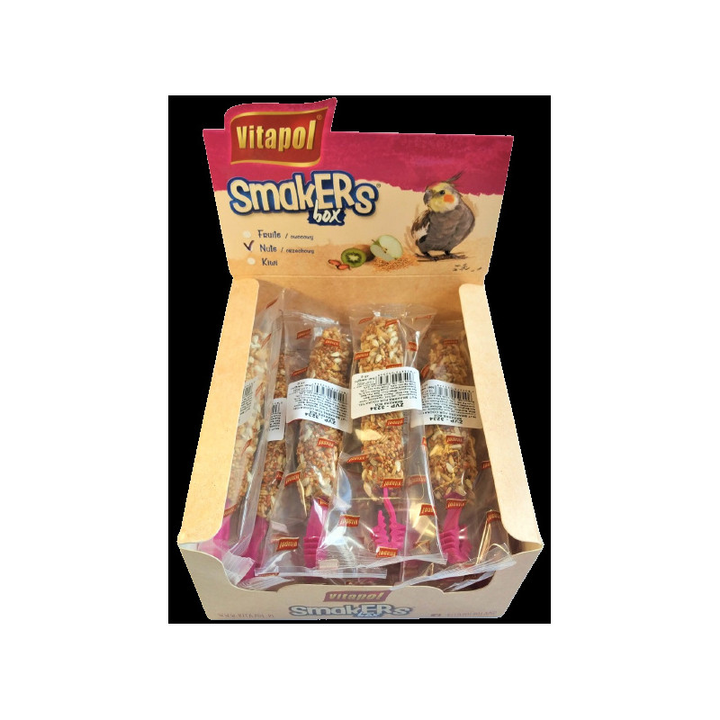 Колба Vitapol Smakers Box для німф, зі смаком горіха, упаковка 12 шт Ласощі Smakers складаються з трьох шарів з'єднаних так, щоб мінімізувати втрати корму під час поїдання.