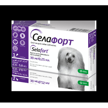 • Краплі KRKA Селафорт від бліх, кліщів і гельмінтів для собак вагою 2.6-5 кг, 1 піпетка