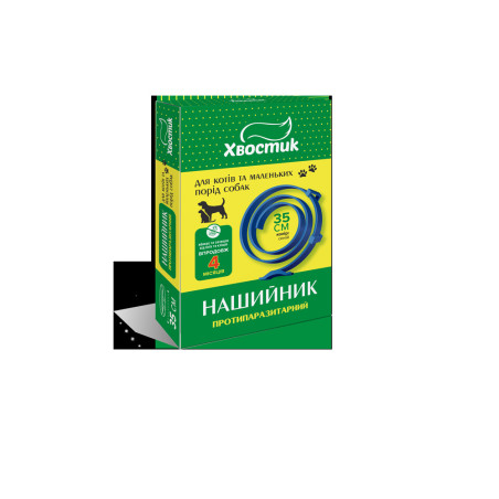 Протипаразитарний нашийник для котів та собак (діазінон), синього кольору, 35 смСклад1 г полімерної стрічки містить діючу речовину: діазинон - 60 мг.ЗастосуванняПрофілактика і лікування собак та котів, при ураженні ектопаразитами: блохами (Ctenocephalus felis, C. canis), паразитиформними кліщами (Dermacentor pictus, D. marginatus, Rhipicephalus bursa, R. sanguineus, Ixodes ricinus), при сифункулятозах та малофагозах котів та собак.ДозуванняНашийник застосовують шляхом нещільної фіксації на шиї тварин.
