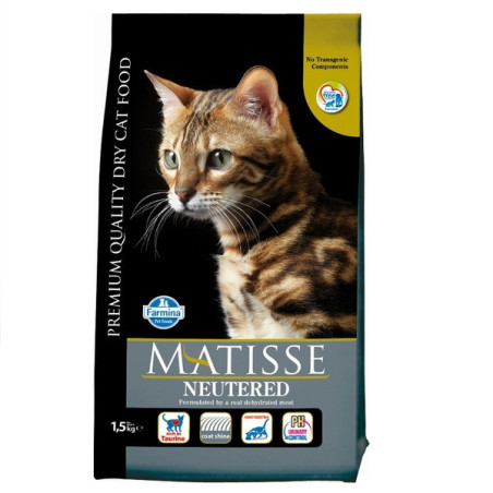 Повнораціонний та збалансований корм для дорослих стерилізованих кішок та кастрованих котів.Склад: Дегідратоване м'ясо курки та індички (32%), рис (25%), кукурудза, дегідратована риба, курячий жир, гідролізат тваринних білків, пульпа цукрових буряків, сушена морква (2%), порошок шпинату (2%), порошок пульпи червоного буряка (2%), риб'ячий жир, олія, кукурудзяний глютен, дегідратовані цілісні яй