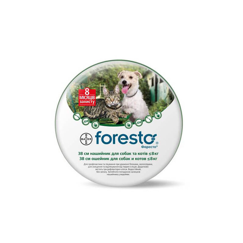 Безперервне використання нашийника Bayer Форест забезпечує захист тварин протягом 8 місяців.