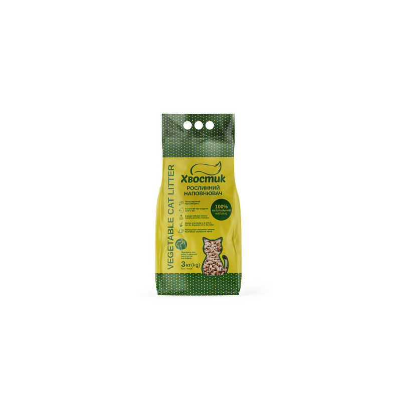 Рослинний наповнювач ТМ Хвостик – це натуральне рішення для туалету котів, гризунів та інших тварин.
