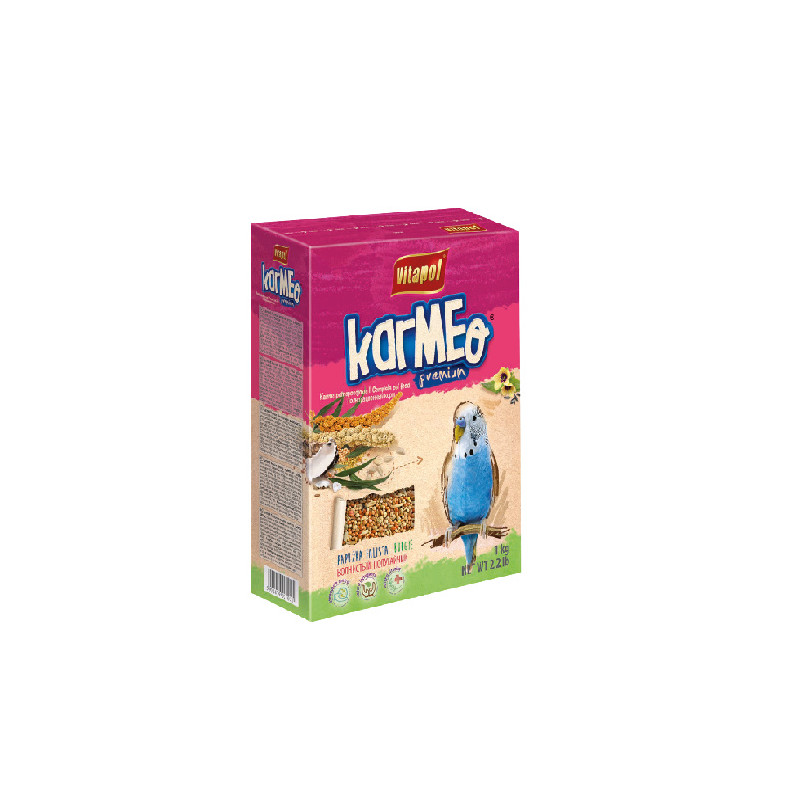 Корм Vitapol Karmeo - це корм преміум класу. В корми для папуг додано екструдовані інгредієнти на основі фруктів і люцерни, багатих поживними речовинами. Значно знижено кількість інгредієнтів з високим вмістом жиру, щоб утримувати птахів, що живуть в клітинах ще в кращій формі. Зернова суміш також збагачена подрібненими черепашками устриць, які є відмінним природним джерелом кальцію, який нео
