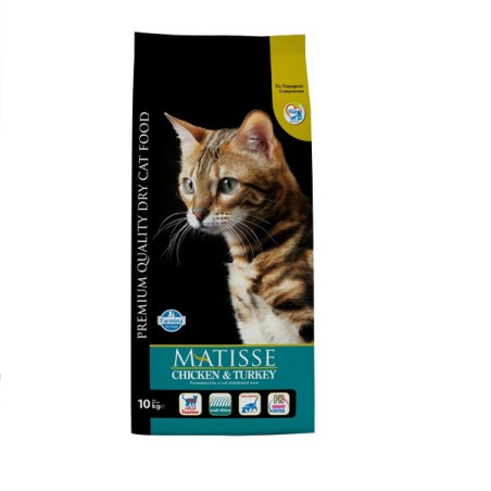 Повнораціонний та збалансований корм для дорослих кішок.Склад: Дегідратоване м'ясо курки та індички (32%), рис (25%), кукурудза, дегідратована риба, курячий жир, гідролізат тваринних білків, пульпа цукрових буряків, сушена морква (2%), порошок шпинату (2%), порошок пульпи червоного буряка (2%), риб'ячий жир, олія, кукурудзяний глютен, дегідратовані цілісні яйця, хлорид натрію, хлорид калію, сул