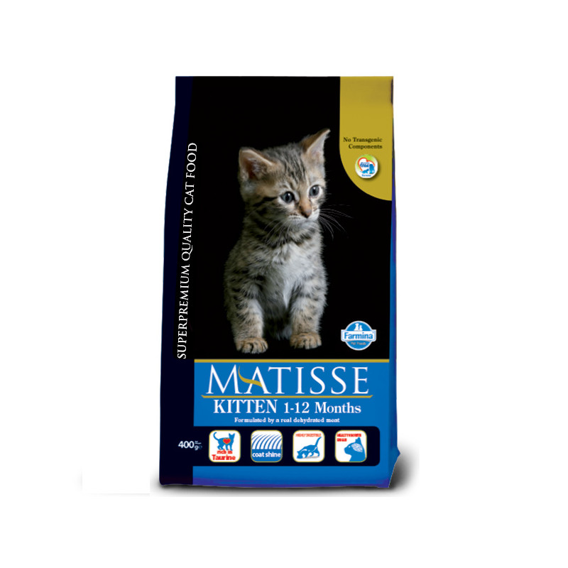 Повнораціонний корм для кошенят, вагітних і кішок, що годують.Склад: Дегідратоване м'ясо курки (36%), рис (20%), курячий жир, кукурудза, дегідратована риба (6%), кукурудзяний глютен, дегідратовані цілісні яйця (4%), гідролізат тваринних білків, пульпа цукрових буряків, риб'ячий жир, рослинна олія, хлорид натрію, хлорид калію, сульфат кальцію дигідрат, сухі пивні дріжджі, монодикальційфосфат, карбонат кальцію. Добавки на 1кг – Вітамін А 18000МЕ; Вітамін D3 1800 МЕ; Вітамін Е 180мг; Вітамін З 180мг; Ніацин 45мг; Пантотенова кислота 18мг; Вітамін В2 9мг; Вітамін В6 7.2мг; Вітамін В1 5.4мг; Вітамін Н 0.45мг; Фолієва кислота 0.54мг; Вітамін В12 0.07мг; Холін хлорид 3000мг; оксид цинку 108мг; сульфат цинку моногідрат 120мг; марганцю сульфат моногідрат 150мг; сульфат заліза моногідрат 44мг; заліза карбонат 60мг; сульфат міді пентагідрат 50мг; йодат безводний кальцію 2.4мг; селеніт натрію 0.22мг; DL-метіонін 3000мг.Поживні речовини: сирий білок 36.00%; сирий жир та олія 14.00%; сира клітковина 0.90%; сира зола 7.30%; кальцій 1.25%; фосфор 1,00%; магній 0,09%; таурін 2900мг/кг.ЕНЕРГЕТИЧНА ЦІННІСТЬEM Kcal/Kg 3703 - Mj/Kg 15,49Рекомендації щодо використання: норми годівлі вказані у таблиці на упаковці.