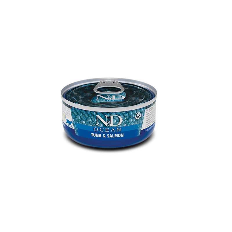 Повнораціонний вологий корм для дорослих котів ТУНЕЦЬ І ЛОСОСЬ.Склад: стейк із тунця (60%), філе лосося (10%), риб'ячий жир, свинина, курка, ягня, фруктоолiгосахариди, хондроїтин сульфат, глюкозамін, вітаміни, мінерали.Харчові добавки на кг: Вітамін A - 4800 МО; Вітамін D3 - 320 МО; Вітамін E - 160 мг; Холіну хлорид - 501 мг; Цинк (Хелат цинку гідроксі-аналога метіоніну) - 36 мг; Марганець (Хелат марганцю гідроксі-аналога метіоніну) - 6,8 мг; Залізо (Хелат заліза гідрату гліцину) - 16,8 мг; Мідь (Хелат міді гідрокси-аналогу метіоніну) - 2,9 мг; DL-метіонін, технічно чистий - 1500 мг; Таурин - 800 мг; L-карнітин - 50 мг.ЖИВИЛЬНІ РЕЧОВИНИ: Волога - 78,00%; сирий протеїн - 12,30%; сирий жир і олії - 4,00%; сира клітковина - 0,40%; сира зола - 2,00%.ЕНЕРГЕТИЧНА ЦІННІСТЬ: EM Kcal/Kg 954 - Mj/Kg 3,99