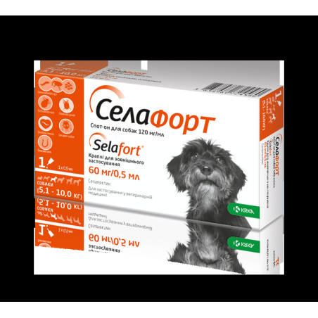 • Краплі KRKA Селафорт від бліх, кліщів і гельмінтів для собак вагою 5.1-10 кг, 1 піпетка