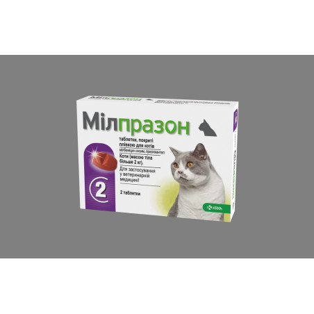 при комбінованих нематодо-цестодозних інвазіях.Препарат також можна застосовувати для профілактики дирофіляріозу серця (Dirofilaria immitis), якщо показане супутнє лікування проти цестод.ДозуванняПрепарат застосовують котам одноразово під час годівлі з невеликою кількістю корму або вводять примусово на корінь язика після годівлі у мінімальній терапевтичній дозі 2 мг мілбеміцину оксиму та 5 мг празіквантелу на кг маси тіла.Залежно від маси тіла котів фактичне дозування складає: Маса тіла Кількість препарату2 - 4 кг ½ таблетки> 4 - 8 кг 1 таблетка> 8 - 12 кг 1½ таблетки Попередньої голодної дієти і застосування послаблюючих засобів перед дегельмінтизацією не вимагається.З лікувальною метою котів дегельмінтизують за показами, з профілактичною метою - щоквартально, а також перед кожною вакцинацією і паруванням у терапевтичній дозі.