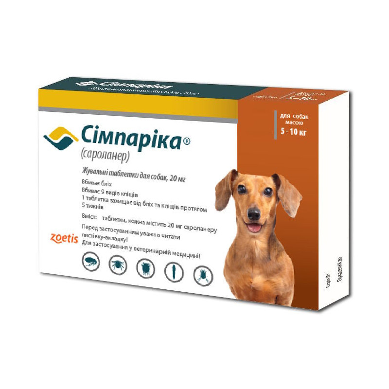• Сімпаріка для собак 5 - 10 кг - купити таблетки від бліх і кліщів | Zoetis