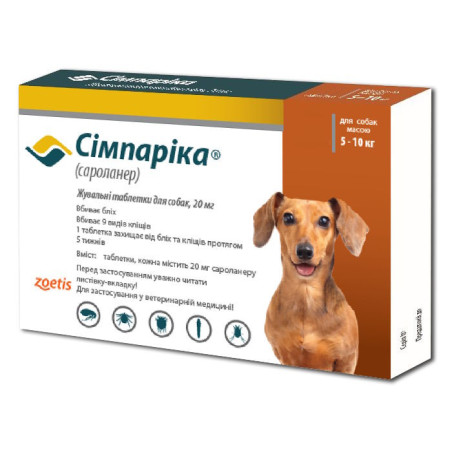 Сімпаріка для собак 5 - 10 кг - купити таблетки від бліх і кліщів | Zoetis