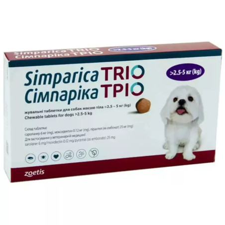 • Simparica Trio для собак 2.5 - 5 кг: Купуйте надійний захист свого улюбленця